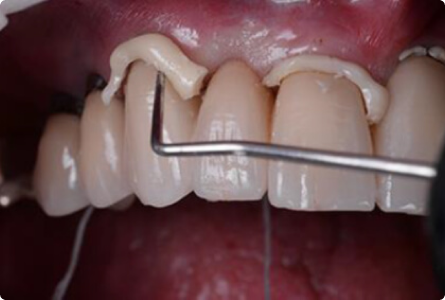 Easy excess removal of RelyX Universal Resin Cement after tack curing (2-3 seconds)
