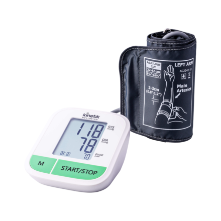 Blood pressure monitor that takes a reading while the cuff inflates, releasing quickly once the reading is complete to minimise pressure on the arm. Quick-reference indicator means the reading is highlighted against the indicator for simple classification. 90 reading memory so the user can keep a record to share with their GP. Fully automatic: works at the push of a button. Measuring accuracy within +/-3 mmHg. Comfortable quick-release cuff fits upper arms measuring 22-42cm. Includes: WBP1 Blood Pressure Monitor, Universal Cuff (22-42cm), Instruction Manual, Quick-Reference Guide, and AAA Batteries x 4.