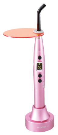 Light and compact with a curing output of 1200mW/cm². 3 Curing Modes: Full Power, Ramp, Pulse. Digital display. Autoclavable light guide. Cordless LED. Wavelength: 420-480nm. 12 month warranty. Includes Battery, Light Guide, Orange Shield, Power Transformer and IFU.