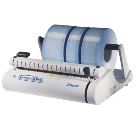 Electronic thermosealing machine for continuous cycle processing. Compact design with sealing lever positioned at the front. Resistant, reliable and easy to use. Tabletop or flush-mounted. Compliant with UNI 868-5 and EN 11607-2 standards. Sealing strip: 12mm. Sealing area width: 310mm.