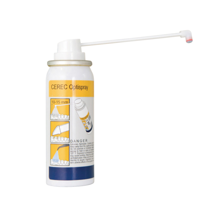An advanced contrast medium to enable easier and more precise optical impressions, and ultimately, the most aesthetic and functional CAD/CAM-produced dental restorations possible. Fast, effective and simple application. The layer is removed within seconds with water or solution. Thanks to a thin homogeneous contrast layer, optimal optical results are achieved. Depending upon application (mandible/maxilla), the spray head can be easily turned or angled into the desired position. Blue in colour, making it more easily distinguishable than white. Spearmint scent and flavour.