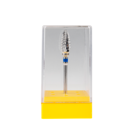Tungsten carbide cutters for dental laboratories. Cross Cut fine are for precious metals and ceramics/porcelain; coarse are for Cr Cobalt, precious metals and acrylics; and x-coarse are for acrylics. Plain Cut are for precious metals and acrylics. Black - x-coarse for plastic and gypsum; green - coarse for shaping plastic and gypsum; blue - standard for all dental materials; red - fine for all dental materials; yellow - x-fine for alloys, composites and ceramics.