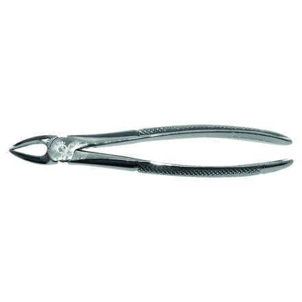 Forceps used for the extraction of upper roots. Please note: this product is supplied for use in primary care/dental practices and its instructions for use are issued in accordance with HTM 01-05 Essential Quality Requirements. Should a customer wish to purchase the product for acute care use, it is the responsibility of the user/customer to establish and follow validated cleaning, disinfection and sterilisation protocols that align with NHS England HTM 01-01 guidelines to ensure the appropriateness of our device in acute care settings. By purchasing and using our reusable surgical medical device for use in acute care settings, you acknowledge and accept the responsibility of implementing validated cleaning, disinfection and sterilisation protocols that comply with NHS England HTM 01-01 to mitigate any associated risks.