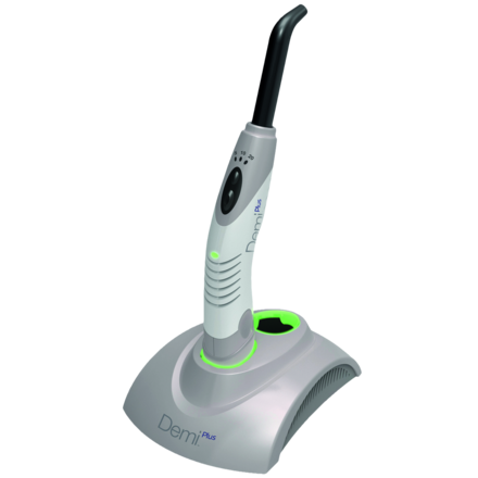LED light-curing unit with periodic level shifting (PLS) technology and thermal control. Power level shifts from 1100mW/cm² to a peak of 1300mW/cm² to deliver a true 5 second cure for shades A3 and lighter without generating excess heat. Enhanced lightweight and ergonomic body design; made from Valox resin, a high performance plastic. 8mm extended light guide; +28% longer giving improved access for posterior procedures. Lithium-ion battery can give 300 x 10 second cures with a single charge. 3 year warranty. Demi Plus Kit Includes: Handpiece, 8mm Light Guide, Lithium-ion Battery Pack, Battery Charger, Power Supply and Protective Light Shield.