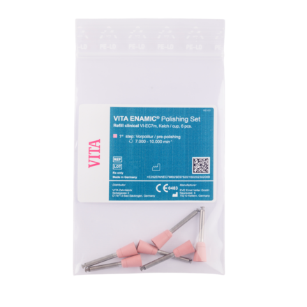 Efficient and material-specific surface treatment of hybrid ceramic restorations in dental practices and laboratories. Pregloss and high-gloss polishing, including careful and gentle polishing of occlusal surfaces, cusps, fissures and contact points of the restoration.
