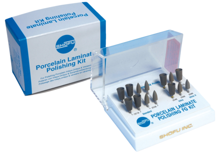 Veneer kit which contains specific instruments to assist the practitioner in all aspects of porcelain veneer placement. Kit: FG0318 Regular Grit Robot FG Point Diamond x 1, Fine Grit Robot FG Point Diamonds x 2, T&F Hybrid Points x 3, CA Dura-White Stones in FLT and RE1 Shapes x 2, CA Ceramiste Standard, Ultra and Ultra II in Knife, Wheel and Cup shapes x 8