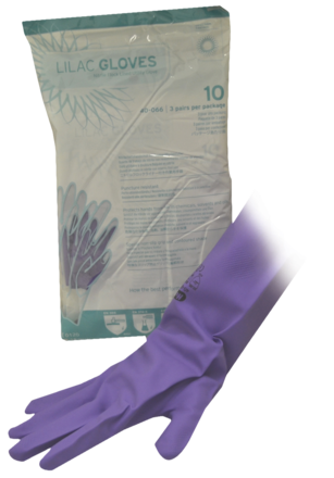 Lilac, non-sterile gloves for use in sterilisation areas and during disinfection processes. Flocklined nitrile, utility gloves do not contain latex. Resist chemicals better than latex gloves. Puncture resistant for improved protection against sharps injuries. Moulded texture improves tactile feel and grip. Can be autoclaved up to 135°C up to five times.