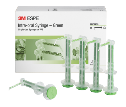 Single-use intraoral syringe that provides precise application for a more accurate final dental restoration. Less impression material waste. Small, ergonomic design for easier handling. Very hygienic usage with no messy clean-up and no disinfection needed.
