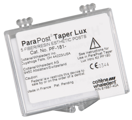 Parallel and tapered translucent fibre post system. An alternative to metal posts when an aesthetic metal-free restoration is desired. Outstanding strength. Rounded head design reduces stress and locks-in composite core material. Radiopaque and removable. Light transmitting for fast cementation.