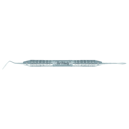 Periotome featuring thin sharp blades used to facilitate the removal of teeth with minimal damage to the surrounding alveolar bone by severing the periodontal ligament. May be used wherever an extract is indicated but are particularly important when considering the placement of a dental implant.