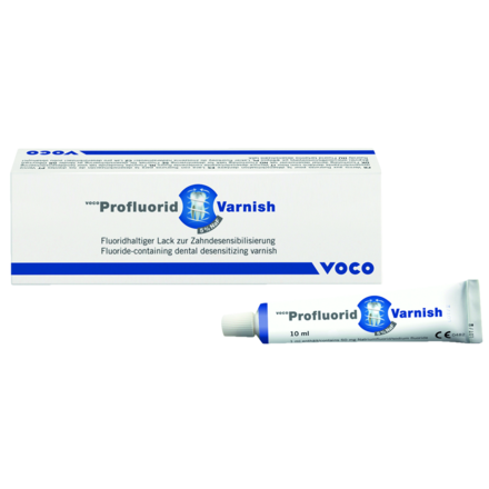 Sodium fluoride varnish to treat hypersensitive teeth and cervical areas after professional cleaning and calculus removal. Suitable on moist surfaces and sets quickly after contact with saliva. High and immediate fluoride release. Sweetened with Xylitol.