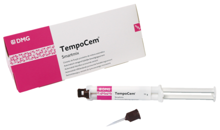 Temporary luting cement with eugenol. Indications include the temporary luting of provisional and permanent crowns, bridges, inlays and onlays. Direct application. Easy and clean removal of excess. Use TempoCem-Automix Soft for large prosthetic cases. Smartmix Intro Kit: Smartmix Syringe 11g x 2 and Smartmix Tips x 20