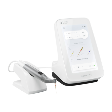 Endo motor that optimises performance of Dentsplys endodontic file systems in both continuous rotation and reciprocating modes. Integrated apex locator (only included with X-Smart Pro+) features Dynamic Accuracy Technology, which gives the user confidence for an accurate shaping experience. Removable and autoclavable handpiece metal sheath. Easy-to-clean, large touchscreen interface provides easy access to ideal settings for the files chosen, with upgradeable firmware to accommodate future file systems. Optional bluetooth footswitch. Mini contra-angle head with integrated 10-Lumen LED and an adjustable position of 360°, to offer superior visibility and ease treatment of patients with limited mouth opening. Portable and ergonomic design. Battery power to support a full day of work. Features a drag-and-drop magnetic holder for user comfort. Fully recharged in 1.5 hours. Motor can be run on battery only or recharged during treatment. Torque range: 0.2-7.5 N/cm. Speed range: 100-3000rpm.