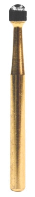 Tungsten carbide bur, nickel plated to protect against corrosion and to provide a firm grip in the handpiece chuck.