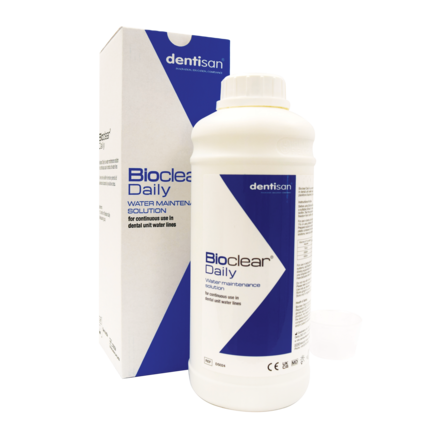 Water maintenance liquid solution for use in dental unit waterlines. Minimises planktonic bacteria counts in water flowing through the dental unit waterlines, which in turn minimises the potential for biofilm formation. The solution is completely clear and colourless. Diluted to a 1% v/v concentration before use, where it is then used to fill the demountable water bottle, or is fed directly into the waterlines.