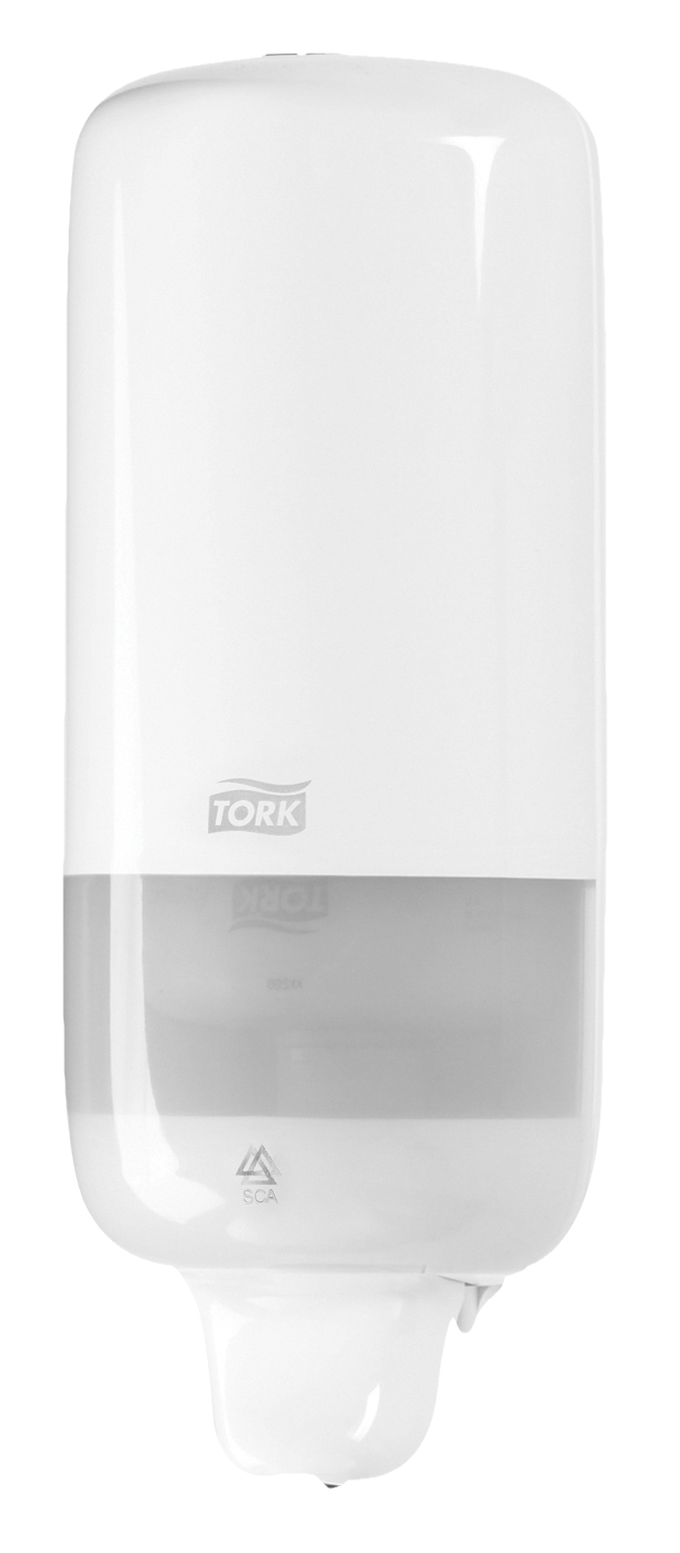 Plastic liquid soap dispenser. Reliable and drip-free system. High capacity: 1000 shots. Robust design, suitable for demanding environments. Size: H291mm x W112mm x D114mm.