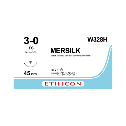Mersilk Sutures Black Coated 45cm 3-0 3/8 Circle Reverse Cutting FS 26mm W328H 36pk