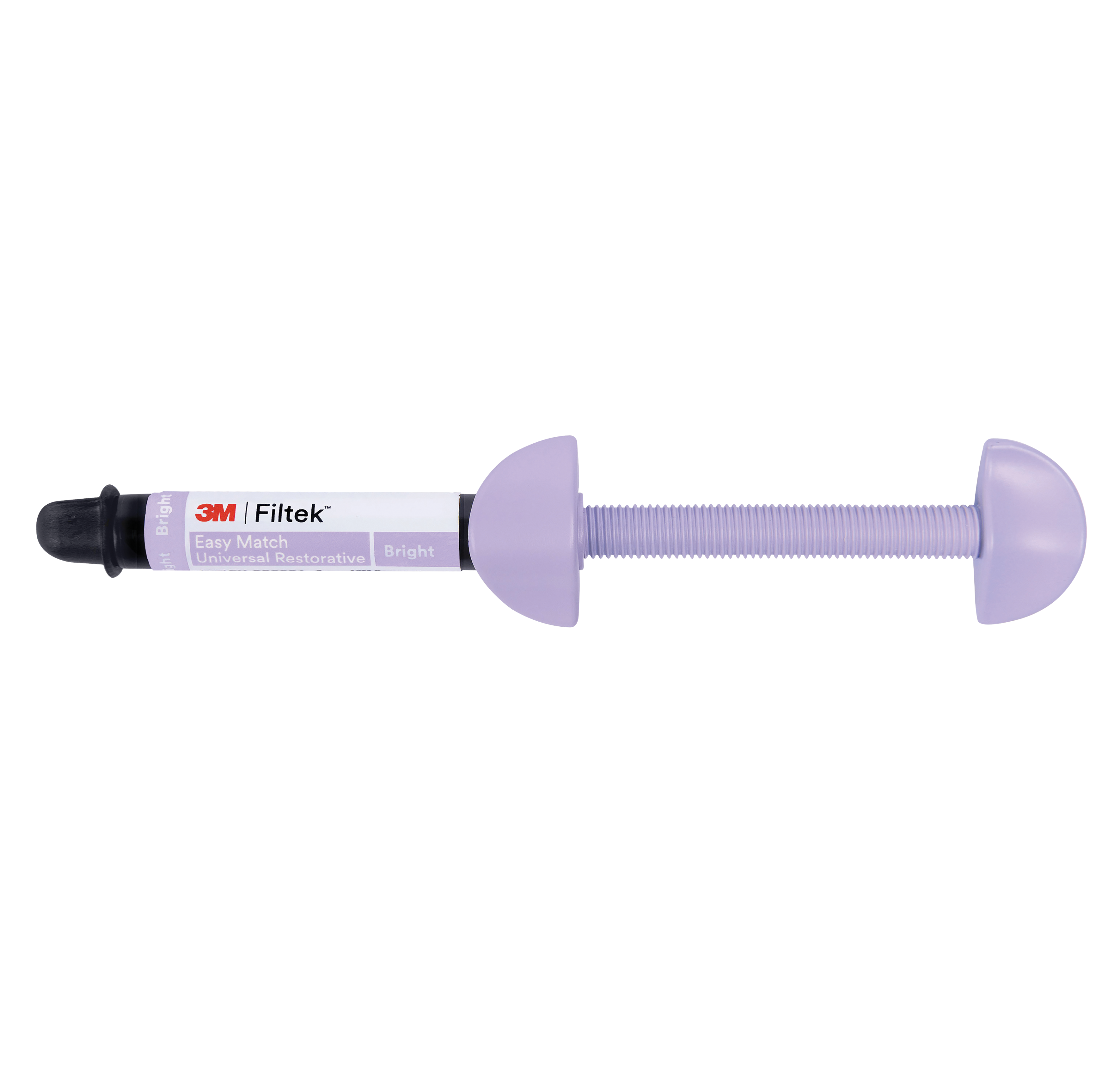 Universal restorative designed to simplify day-to-day dental restorations with intuitive shade selection, naturally adaptive opacity, and reduced inventory. 3-shade system matches the classical VITA shade guide and is designed to simply and intuitively deliver an excellent shade match for most cases. Enamel-like translucency on the bevel and incisal edge. Excellent polish retention, wear resistance and strength. Firm handling. Featuring the same nanotechnology behind 3M dental restoratives. No blocker is needed to mask the darkness of the oral cavity in anterior restorations.