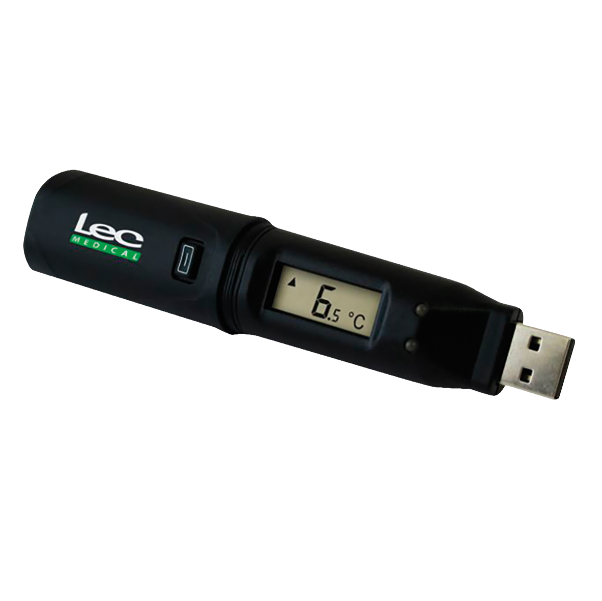 Data logger that can store up to 16,385 readings and is protected against moisture to IP67 standard when the protective cap is fitted. Data logger configuration software is supplied, allowing the user to easily set-up the data logger. Selectable parameters include logging rate, measurement units, high and low alarms. The data logger configuration software is compatible with Windows 2000/XP/Vista/7. Free software is available from Lec Medical. Product Description. High contrast LCD display. Works in temperatures from -35°C to 80°C. Accurate to 0.5°C. Can hold up to 16,385 temperature readings. Logs the surrounding temperature. IP67 moisture resistant. Replaceable lithium battery. Data Logger takes Half AA Batteries.