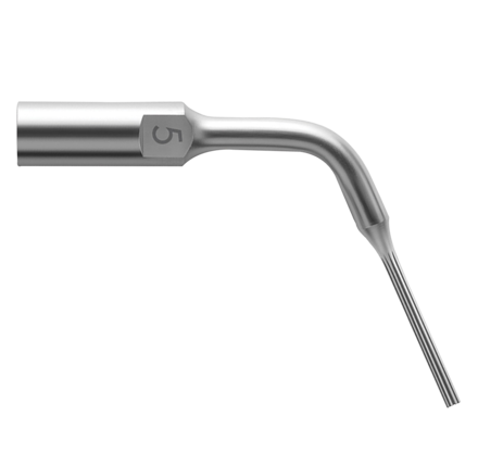 Ultrasonic inserts, specifically designed for access cavity refinement and canal orofice location. Micro milled active part means a minimised risk of diamond grit loss in the patient's mouth. Water port cools down the insert and avoids overheating of the threaded tooth. This is particularly important when removing metal posts which usually require high energy. The intermittent use of the irrigation enables the clinician to alternate between dry precision work and debris evacuation. Insert 1 application: access cavity wall refinement. Insert 2 application: MB2 canal scouter (2nd canal mesio buccal root). Insert 3 application: canal openings scouter. Insert 4 application: metal post removal. Insert 5 application: reveals the orginal pulp chamber floor anatomy. The inserts have been designed to be exclusively used with a Piezo ultrasonic generator.