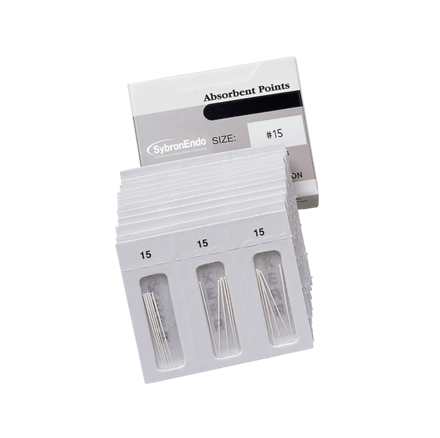 Presterilised and highly absorbent points for the removal of moisture from prepared canals. Rigid enough to be easily inserted and withdrawn while keeping a firmly rolled shape. Sized to correspond with the dimensions of Kerr Endodontics standardised endodontic instruments.