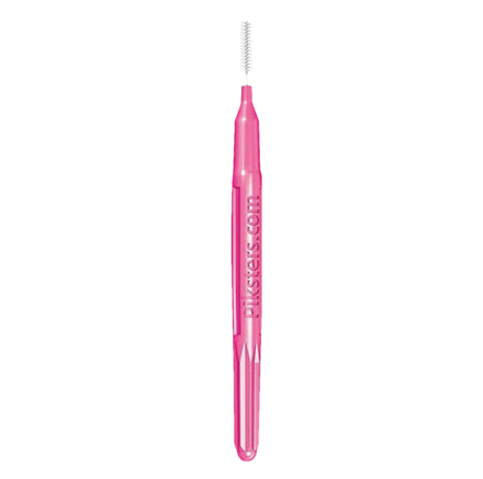 Angled interdental brushes in association with Piksters. Includes a cover sleeve and an extension handle for even easier and more comfortable access to molars. Strong, stiff, plastic-coated wire means less buckling. Rubber- and latex-free. Reusable. Size 00 (pink) - for extremely fine tooth gaps and inside gum pockets. Size 0 (grey) - for very fine tooth gaps and inside gum pockets. Size 1 (purple) - for small tooth gaps and general oral hygiene. Size 2 (white) - for small to medium tooth gaps. Constant brush width. Size 3 (yellow) - for medium tooth gaps and general oral hygiene. Tapered brush width. Size 4 (red) - for medium to larger tooth gaps. Size 6 (green) - for larger tooth gaps, orthodontics, perio, etc.