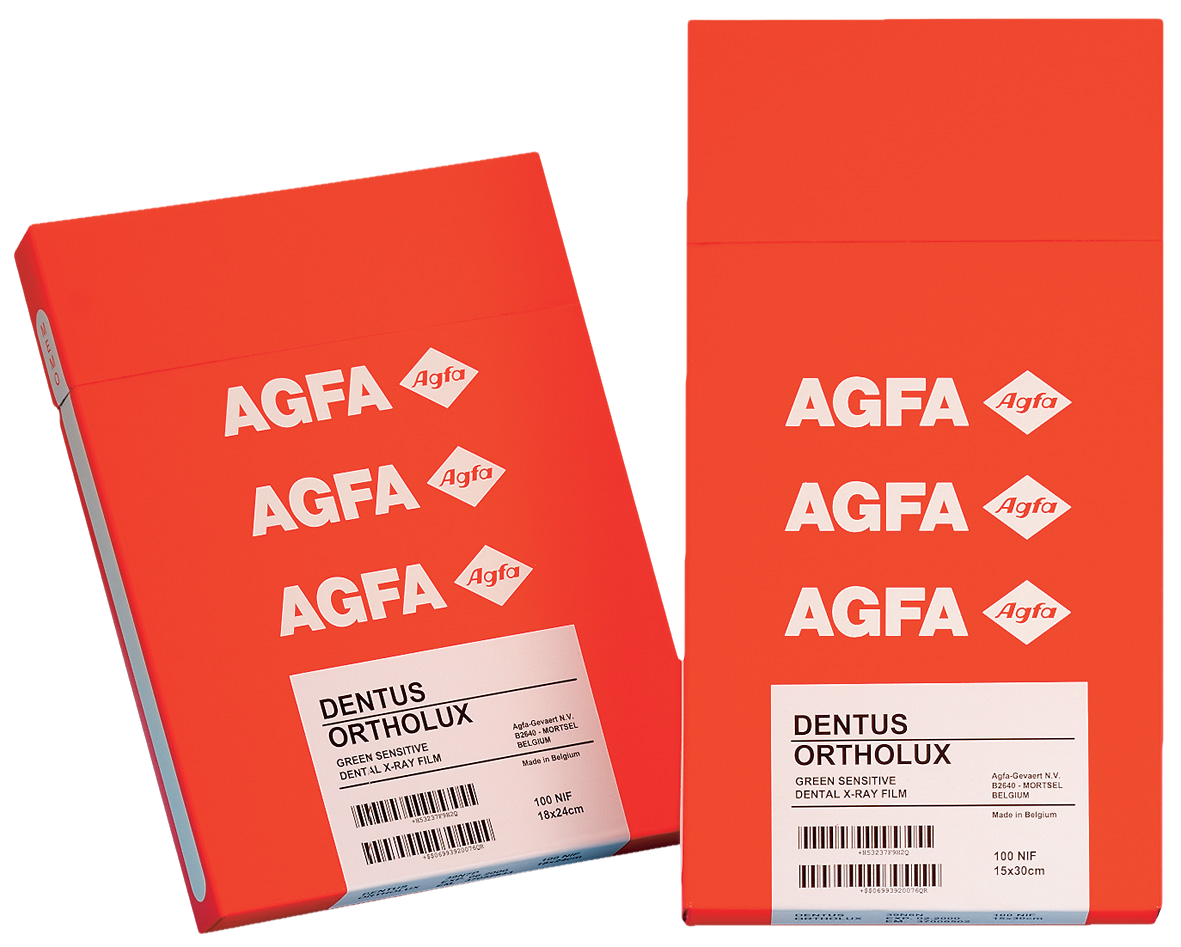 Extraoral film which can be combined with all commercial, green-sensitive intensifying screens. Guarantees excellent image properties at a low dose of radiation, thanks to modern crystal and emulsion technology. Extremely sharp imaging, producing very fine detail recognition. Brilliant image impression, due to the ultra-clear blue base and high contrast. Orthochromatic (green sensitive). Non-interleaved film (NIF).