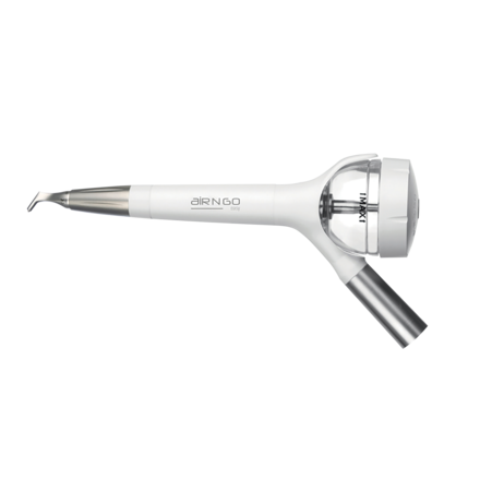 Dual air polisher, suitable for both Supra and Perio applications, ideal for prophylaxis, periodontal and implant treatments. Fast and accurate treatment. Lightweight and with a 360° rotation. Features a non-slip silicone ring which increases the grip of the handpiece, reducing the risk of dropping. Two exchangeable heads. 'STOP POWDER' function, for cutting off the powder flow, transforming the air polisher into an air and water syringe. Blue powder tank for SUPRA applications, and Green for PERIO applications. Precise fluid management through the handpiece. Controlled spray focus for less dissemination of powder and a steady spray stream for constant and regular powder consumption. 20° angle of the perio nozzle means that all sides of the tooth or implant may be treated without changing instruments. Nozzle slides gently into the periodontal pockets, accounting for the surrounding anatomical structures.