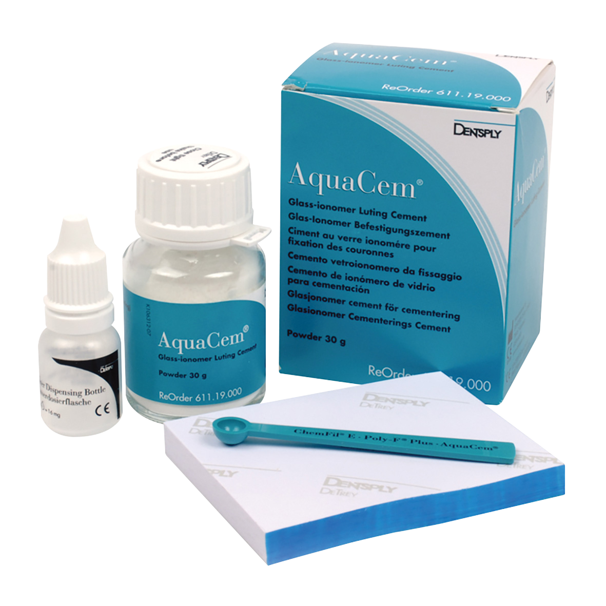Anhydrous glass ionomer luting cement for the permanent cementation of crowns, bridges and orthodontic appliances. Addresses the problem of initial low pH usually associated with glass ionomer cements, by its larger particle size preventing penetration into the dentinal tubules which causes irritation.