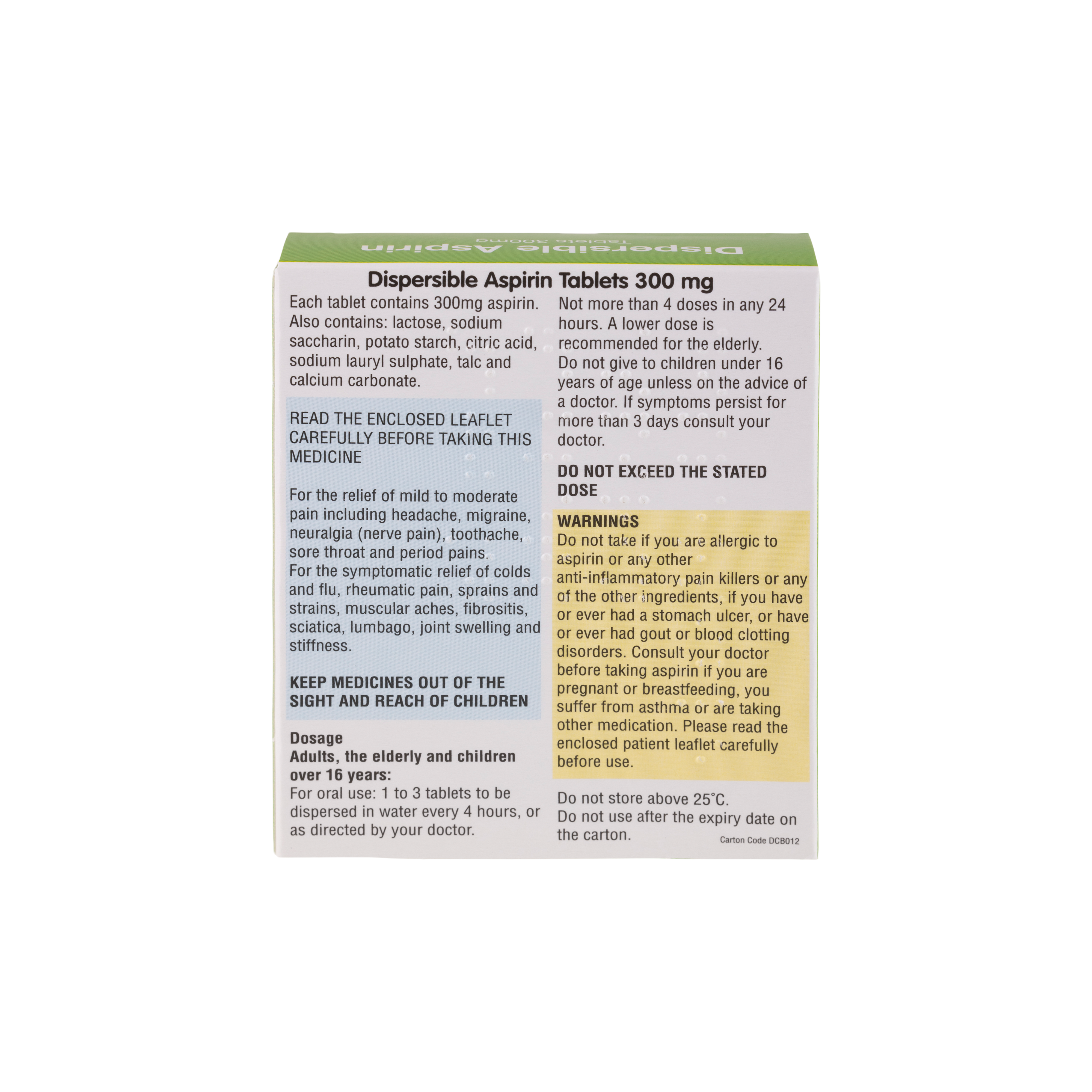 Nonsteroidal inflammatory drug (NSAID) used to treat inflammation, fever, and mild to moderate pain. Antiplatelet agent that helps to prevent blood cells sticking together and forming a blood clot. Used to prevent further heart attacks and strokes in patients with a previous history of heart attacks, unstable angina or strokes, and following bypass surgery. Dispersable tablets. Non-returnable prescription only item. Items will only be supplied to registered customers with a valid GDC, GMC or equivalent qualification.