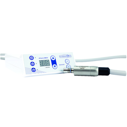 Plug & play' electric micromotor with high torque, internal spray and LED. Brushless motor technology ensures long life cycle. Compact, ergonomic and lighter motor size. Easy to install and operate. 2 programmable memory functions. Ideal for speed-increasing handpieces. Speed range: 1,000-40,000rpm.