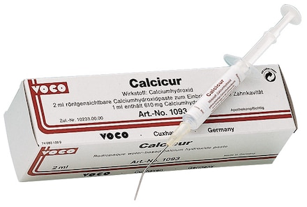 Ready-to-use calcium hydroxide paste for temporary filling of root canals. Suitable for use under any lining or restorative material. Calcium hydroxide content of 45%. Radiopaque.