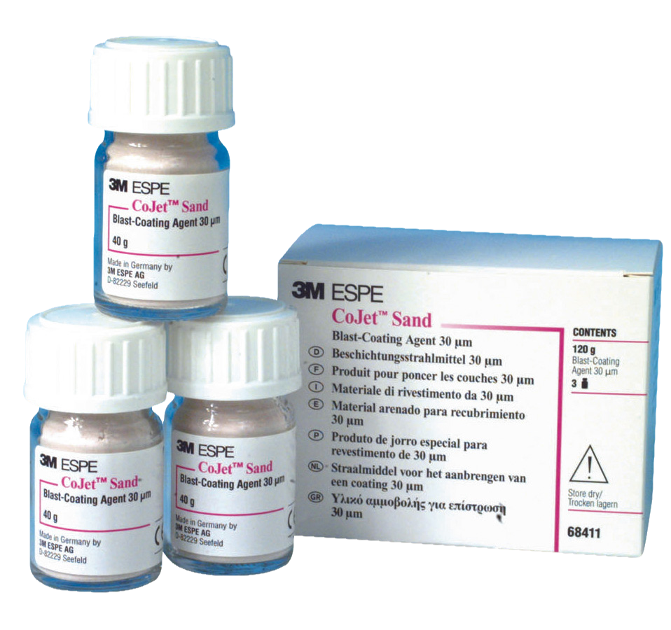 Blast-coating agent used for the intraoral repair of composite and porcelain crown and bridges. Provides additional adhesion for inlays, onlays, veneers, bridges, pins and posts. This innovative system allows for highly aesthetic chairside repairs of direct and indirect restorations, providing an economical alternative to replacing the restoration. Repairs can be made in one session.