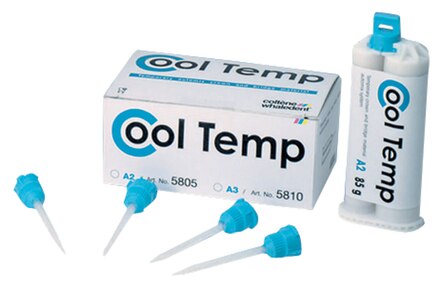 Self-curing crown and bridge material in easy-to-use automix dispensing system. No pulp or gingiva irritation. Quick to use and polish. Low curing temperature does not damage or irritate the pulp. Fast fabrication also allows less chairside time for the patient. Easily removed from the mouth. Supplied in an automix cartridge that fits the standard 1:1/2:1 dispenser. High strength and excellent aesthetics.
