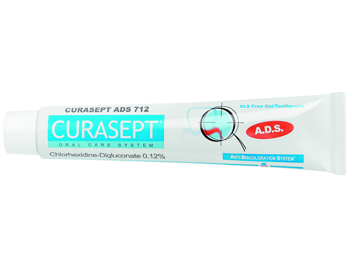 Antibacterial toothpaste ideal when used in conjunction with CURASEPT® ADS mouthwash. Contains a patented, clinically tested Anti-Discolouration System (ADS) which, unlike other chlorhexidine mouthwashes, drastically reduces the appearance of brown-yellow spots which can form on the teeth due to chlorhexidine. No staining. Same efficacy as standard chlorhexidine products. No taste disturbance. Alcohol-free.