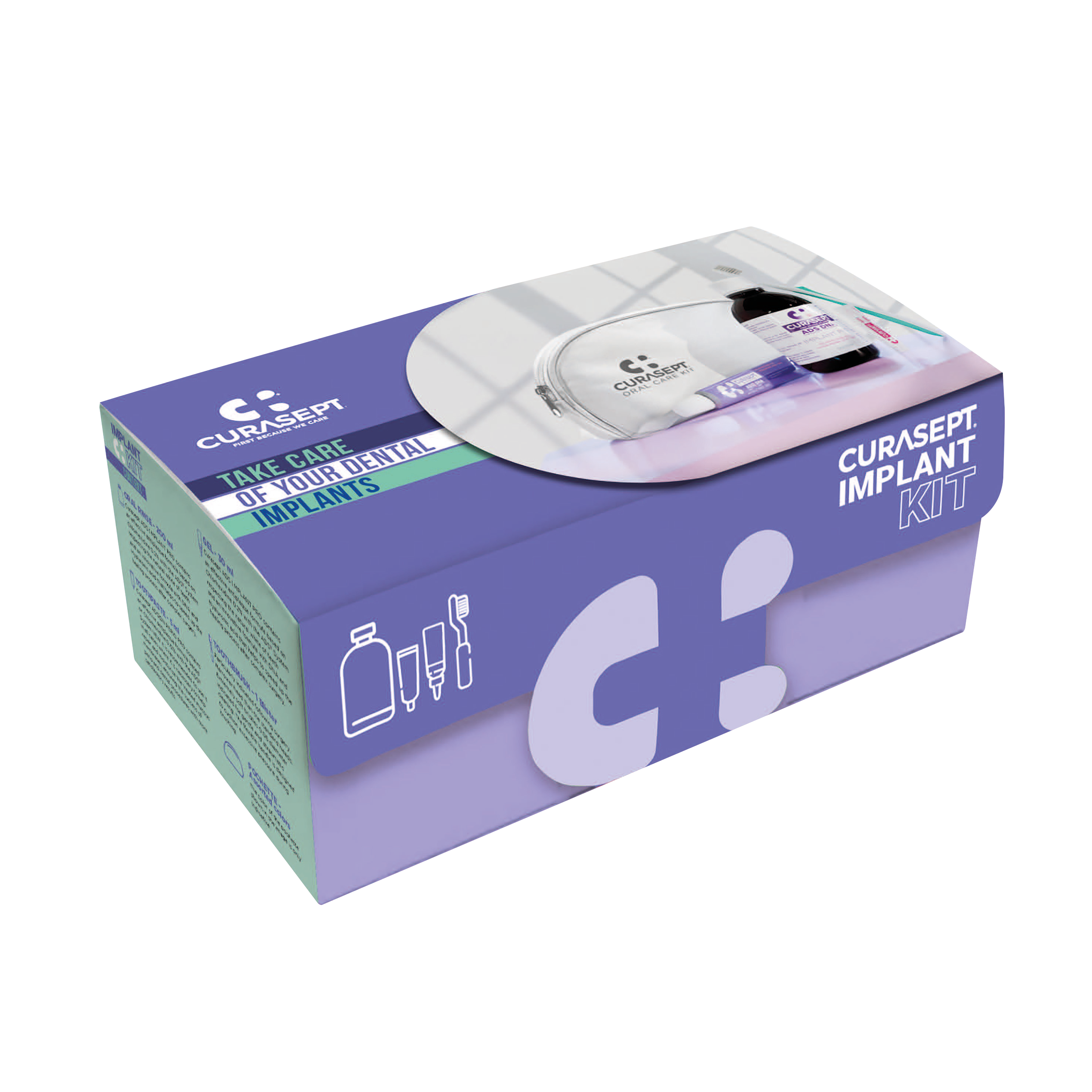 Ideal kit for patients before and after carrying out implant surgery or bone regeneration, or after complex extractions. Chlorhexidine provides an intense antibacterial action whilst the DNA and hyaluronic acid helps to reduce inflammation, boost mucosal tissue regeneration and accelerate healing. Patented ADS Anti-Discolouration System provides dramatically reduced tooth pigmentation and taste disruption for maximum patient compliance and optimum treatment outcomes. Alcohol- and SLS-free. Kit includes Implant Pro Oral Rinse 200ml (0.20% Chlorhexidene), Regenerating Gel 30ml (0.50% Chlorhexidene), Implant Toothbrush, and Oral Care Kit Bag Pink.