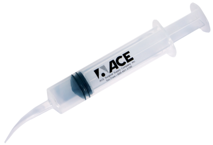 Disposable irrigating syringe with tapered curved tip. Improved design for complete volume control. Autoclavable one time only on the lower autoclave setting. Maximum temperature 270 degree fahrenheit ( 132 degrees centigrade)