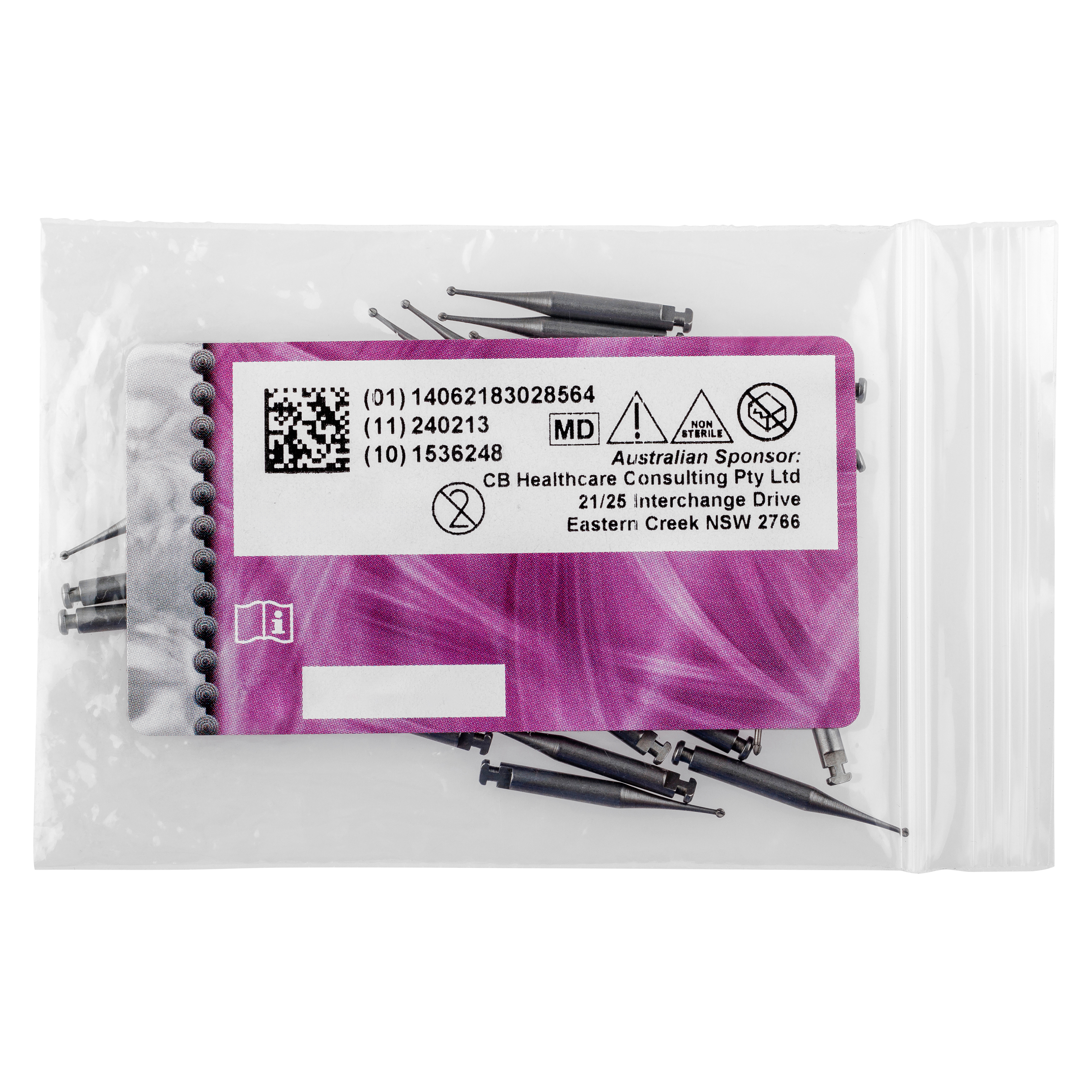 Single piece steel burs with anti-corrosion coating. Heat treated to 750 on the Vickers hardness scale for improved cutting efficiency.