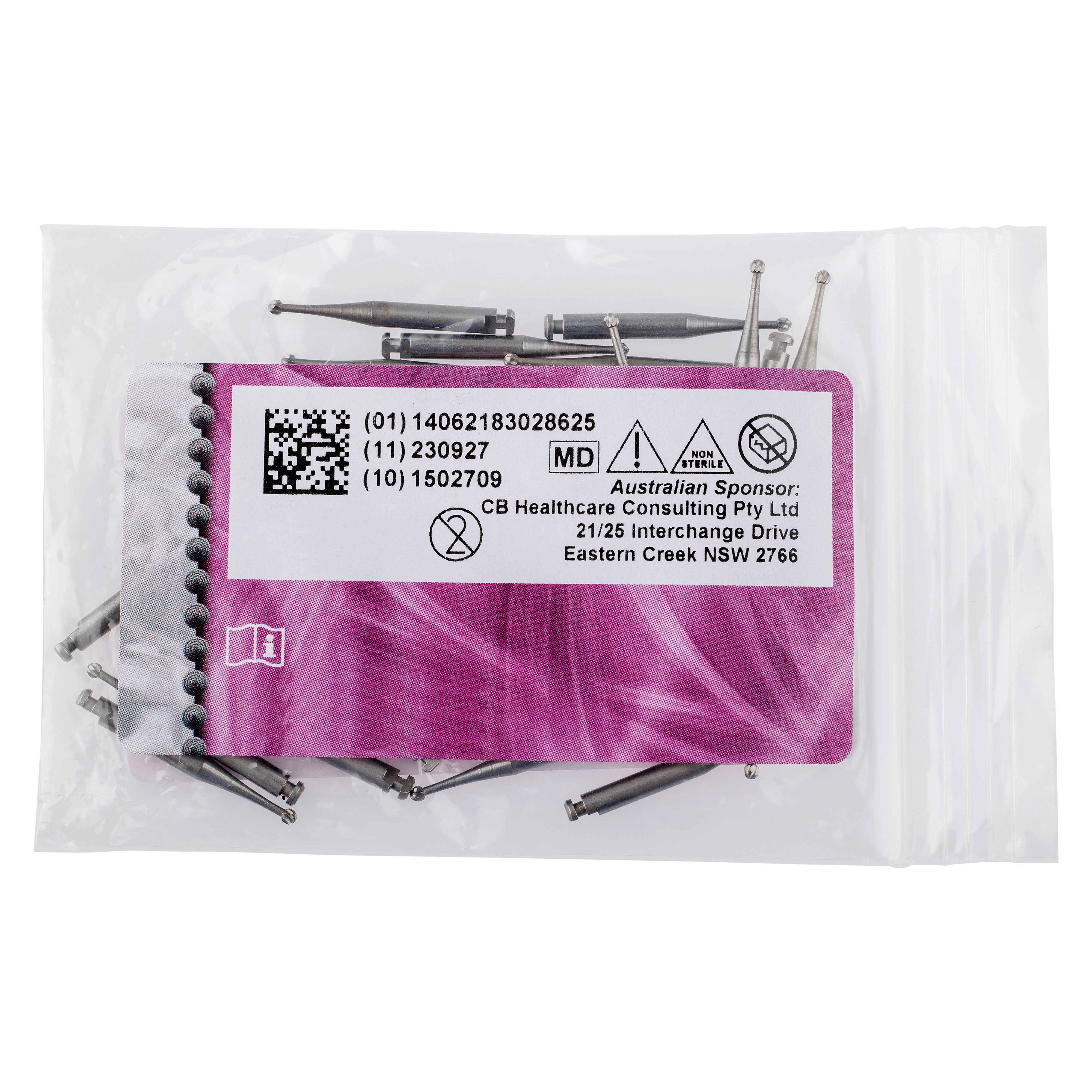 Single piece steel burs with anti-corrosion coating. Heat treated to 750 on the Vickers hardness scale for improved cutting efficiency.