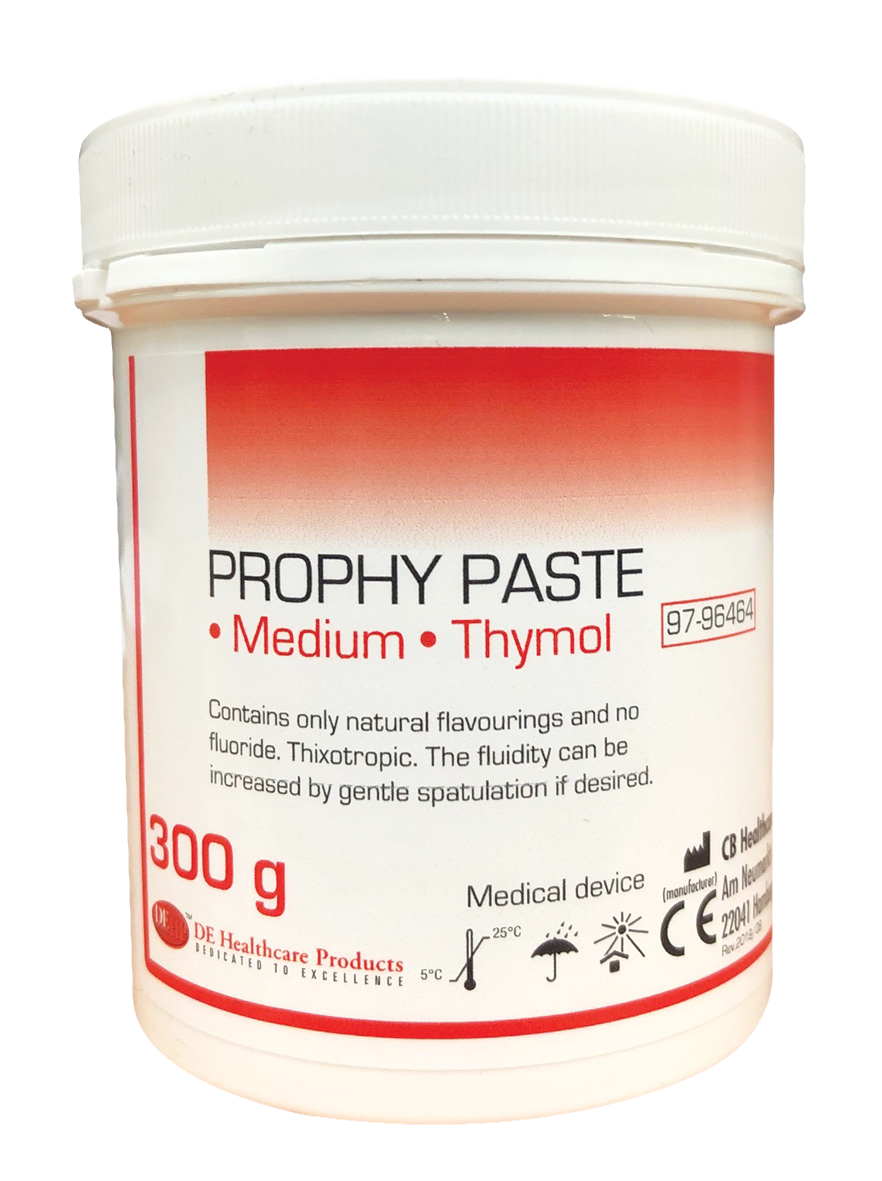 Medium grit, thixotropic prophy paste. Fluoride-free. Pink colour. Suitable for vegetarians and vegans. Gluten-free.