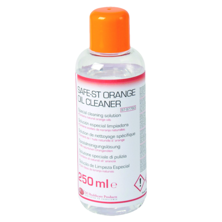 Cleaning solution containing natural orange oils for the removal of zinc oxide cement, alginate, plaster and impression materials, as well as traces of blood and other contaminants. Cleans impression trays, instrument sets, glass plates and ceramic, and is ideal for stainless steel and other surfaces. Not suitable for painted surfaces.