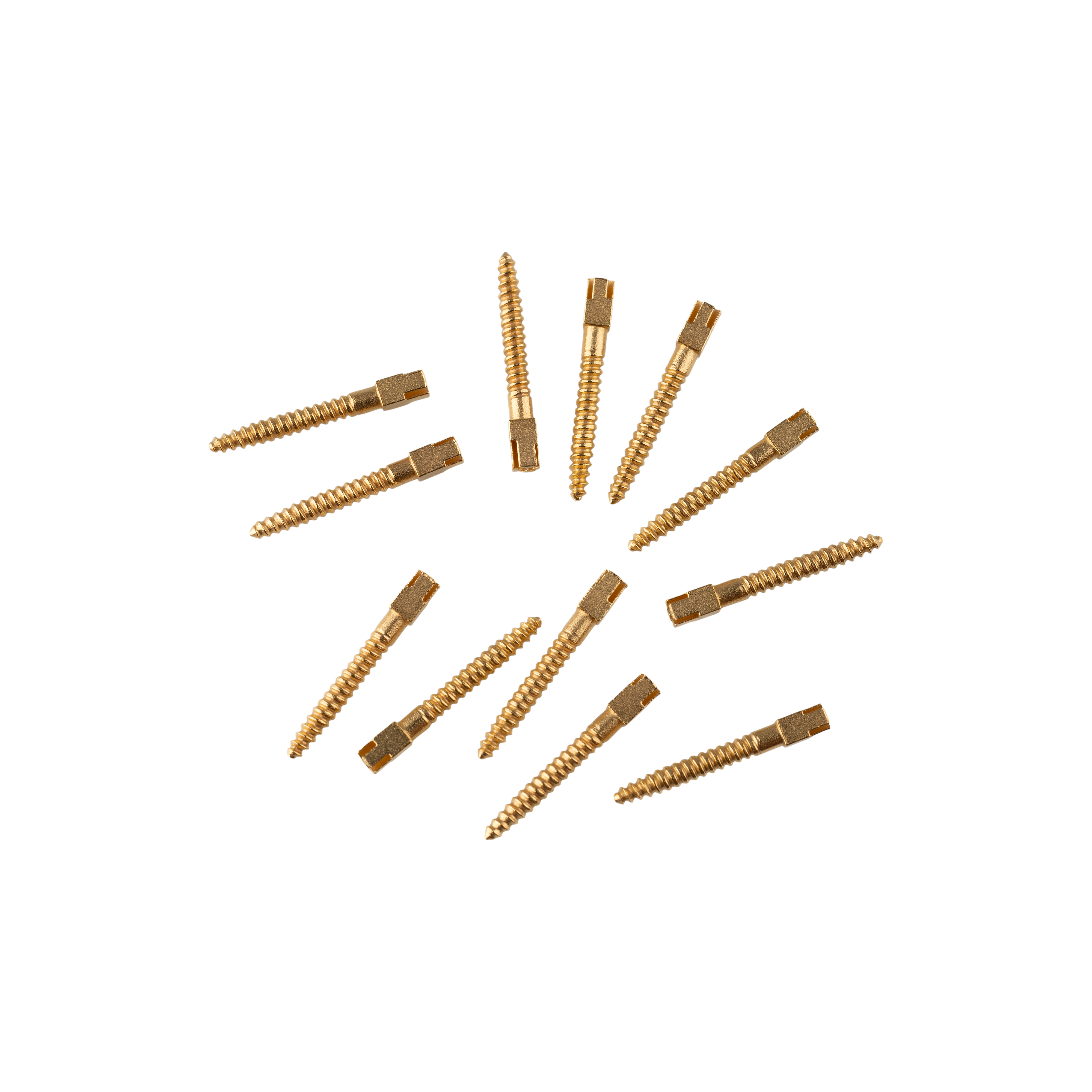 Gold plated screw posts for use with composite materials. Head provides sufficient retention when composite material is used as build-up.