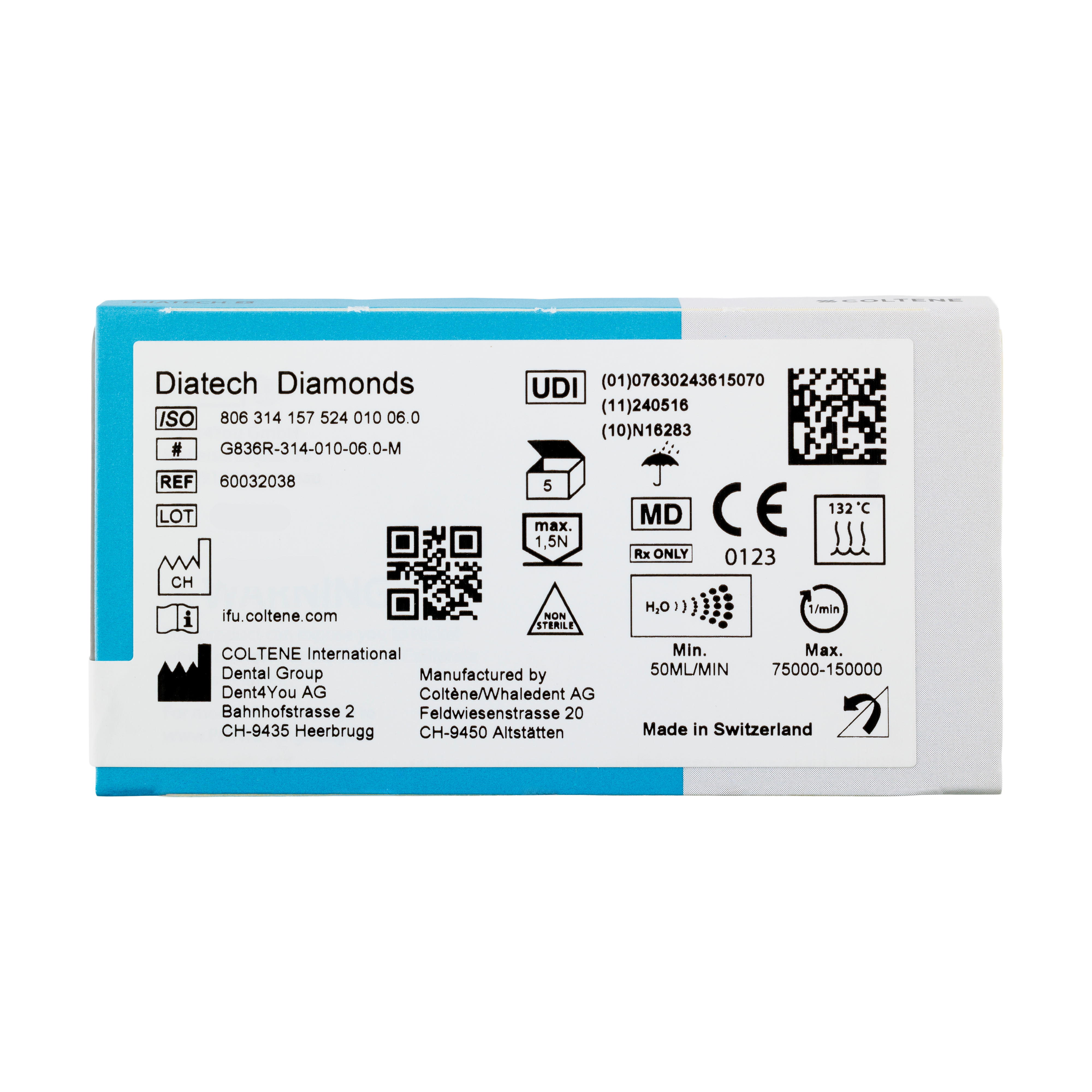 Diatech Gold Diamond Bur G836R-314-010-6ML 5/Pk