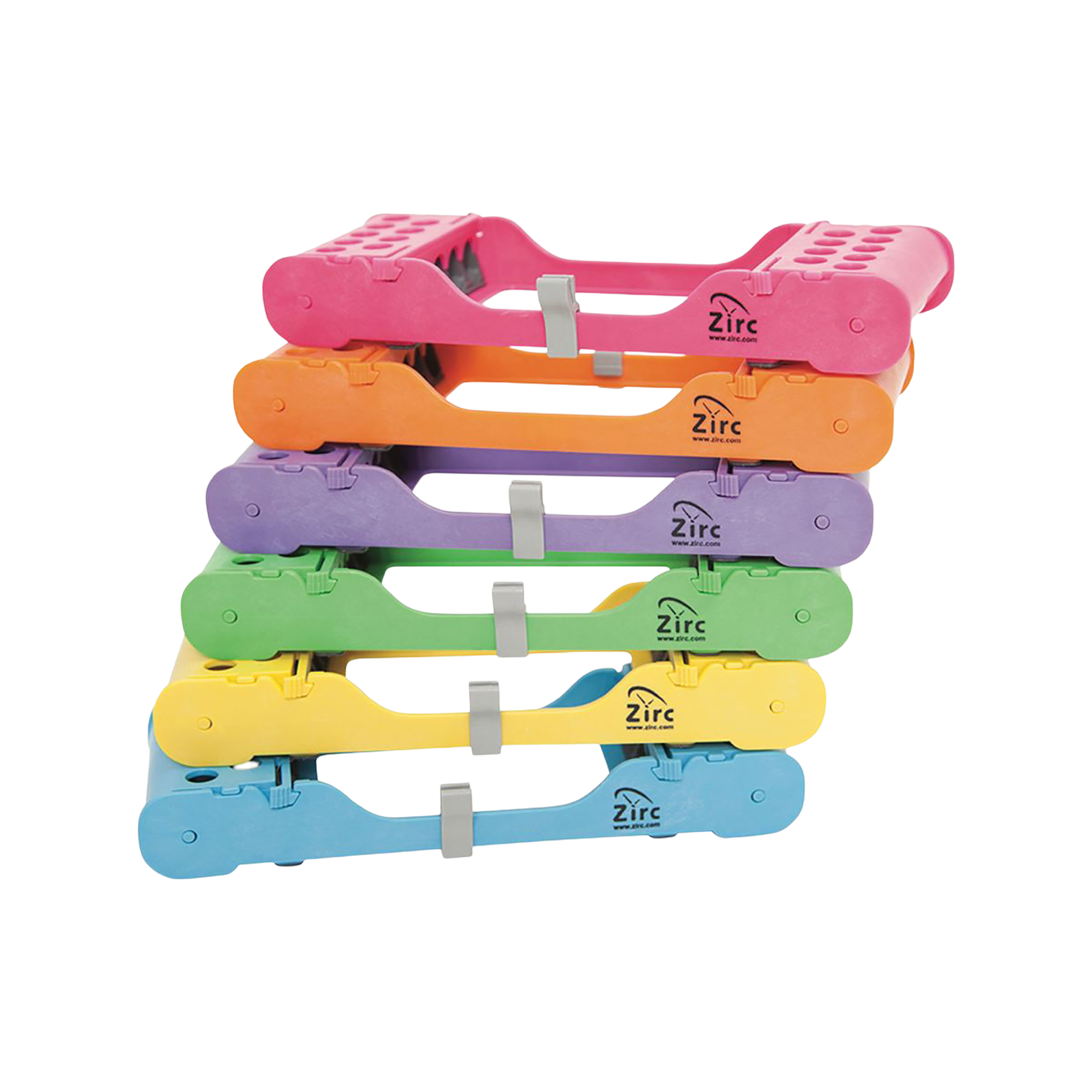 Instrument cassette that holds 5 instruments. Open top, rounded holes and corners allow for superior water flow compared to normal cassettes. Covers are attached to the cassette and can open and fold back easily. Syringe tip holder included. Autoclavable and washer disinfectable. Dimensions: 20.3 x 9.7 x 3cm.