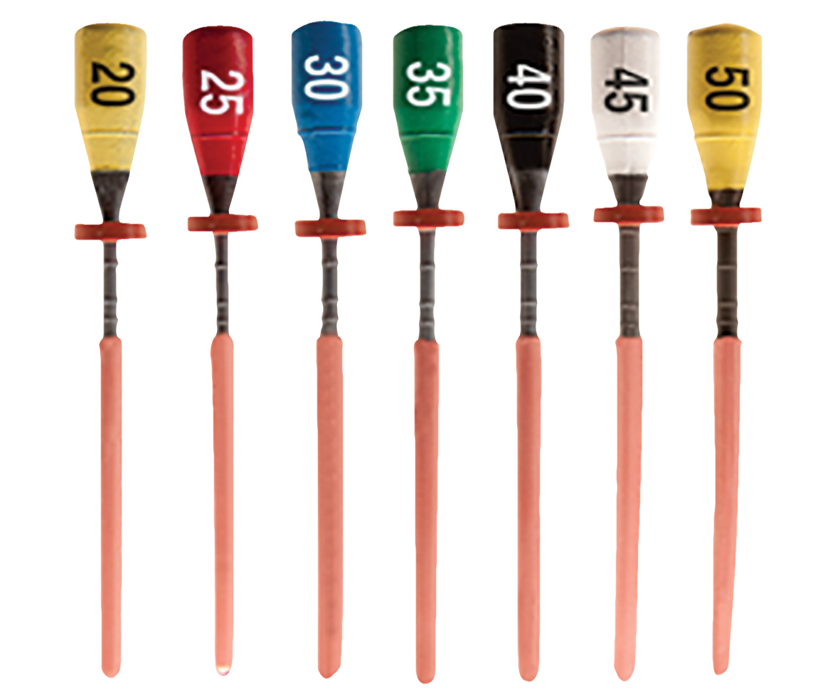 Latex-free obturators - heated alpha-phase gutta percha for excellent 3D fill. Easy-to-use carrier. Radiopaque. Easy-to-remove handle and shaft.