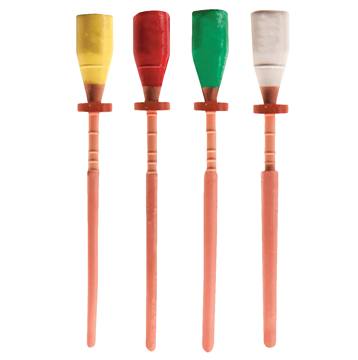 Latex-free obturators - easy-to-place, fully pink-to-the-core gutta percha carriers. Excellent 3D obturation for even the most challenging cases. Easy to retreat and create post space. Easy-to-remove handle and shaft. Excellent flow.