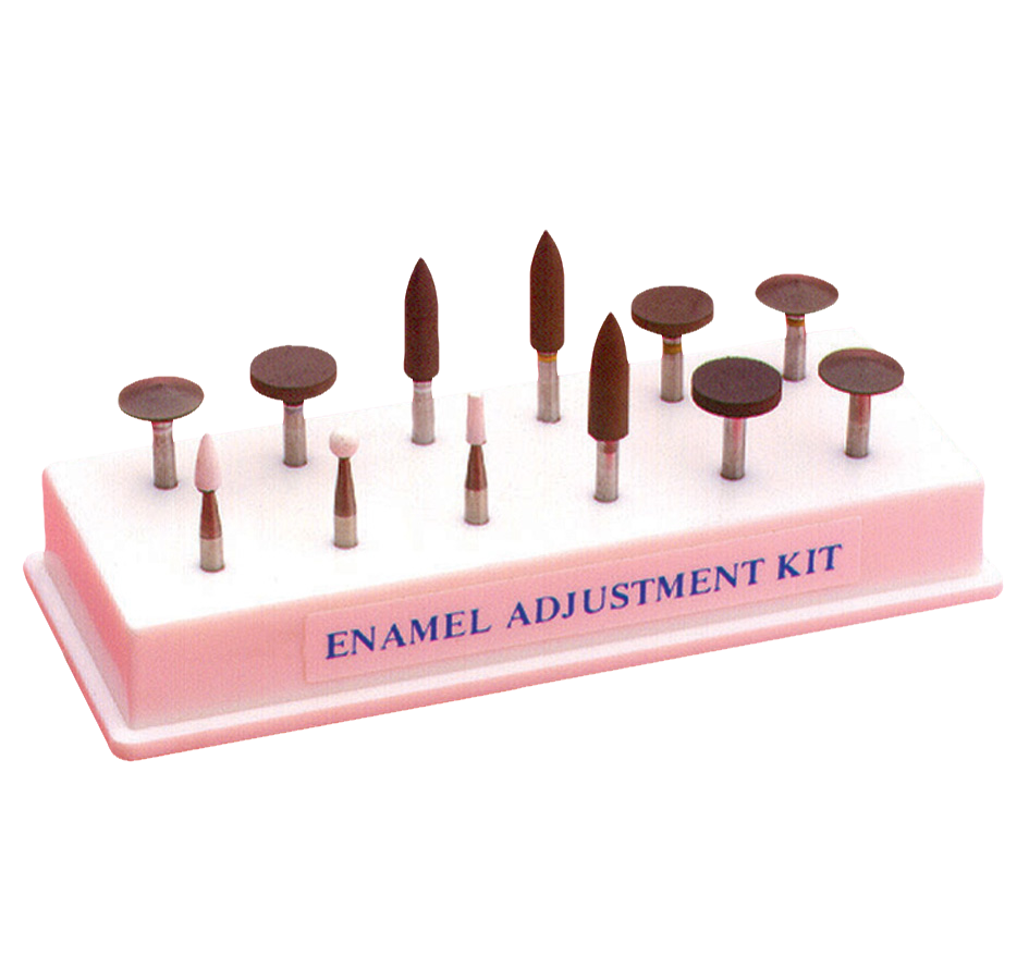 For adjustment in the mouth of porcelain restorations or natural teeth, and superpolishing adjusted surfaces. Enamel Adjustment Kit: CA0307 Dura White Stones x 3 and Ceramiste Points x 9