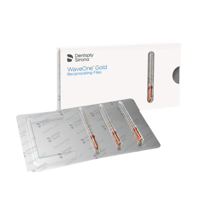 Presterilised endodontic file for simplicity, using only one rotary file in root canal treatments. Both the extended size range (Small, Primary, Medium, Large) as well as the GOLD technology enable a wider range of canal morphologies to be treated. Reinforced safety due to GOLD technology which boosts cyclical fatigue resistance and a reduced screwing effect. Increased cutting efficiency shortening shaping time, leaving more time for irrigation.