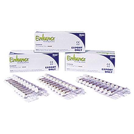Premounted, single-use, cured urethane dimethacrylate resin finishers, impregnated with aluminium oxide. Designed for preparing composite surfaces for their final polish. Yields a smooth, contoured surface with pre-polished surface lustre on composites and compomers.