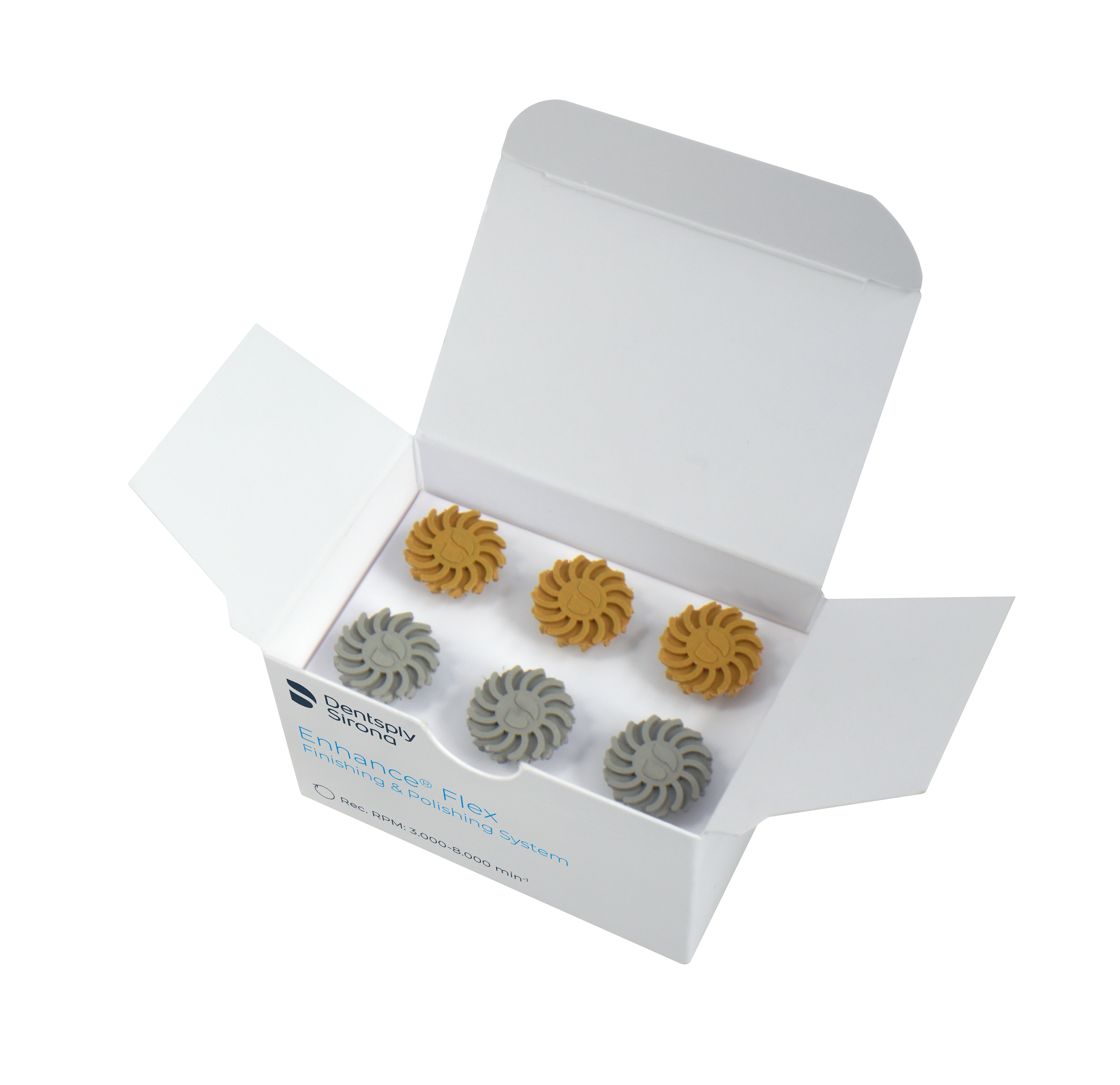 Finishing and polishing system featuring flexible lamellas that adapt seamlessly to all dental surfaces, both anterior and posterior. One shape for all composite restorations, delivering brilliant polishing results and natural-looking aesthetics. Intuitive application. Reprocessable up to 10 times, reducing waste and costs. Suitable for all composite materials and designed to preserve the tooth structure. Intro Kit includes Finisher x 3 and Polisher x 3.